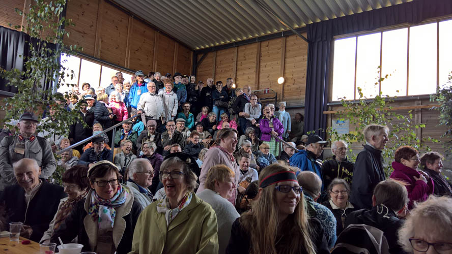 Haapamäelle oli järjestetty joukkoruokailu, jauhelihakeittoa leivän ja veden kera, hyvältä maistui. Areena oli pullollaan väkeä ja Erkki Liikanen sai kyllä yleisönsä otettua. Sateen tauottua oli mukava seurata näytelmää, kuulla kuoroa ja Pertti Hakasen puhe, nähdä uusi juhlavuoden muistomerkki ja nauttia Karjalaisen nuorisoliiton teltalla vohvelikohvit lämpimällä puupenkillä tuulensuojassa.